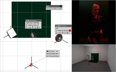 Red, symbolizing danger, is used consistently throughout this series of photographs to evoke a sense of intensity. The top light illuminates her face, casting dark circles under her eyes, intensifying the horror and mysterious atmosphere.