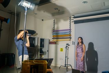 To me, purple signifies fantasy and elegance, which is why I selected it as the color for both the backdrop and the dress. I employed a hard light to illuminate the model's dress, using a slower shutter speed to capture the light trails in the photographs.